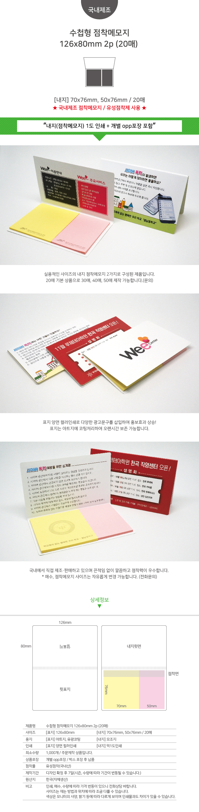 »óǰ¸í Á¡Âø¸Þ¸ð 126*80mm 2p 20¸Å